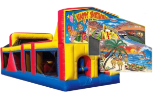 That said, we do have some obstacle courses that can fit some DC, Maryland and Virginia backyards. For larger events, obstacle courses also pair well with moon bounces, slides, and especially inflatable booths and carnival games.