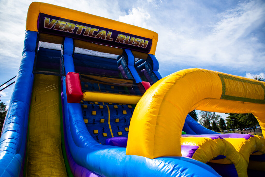 Experience one of our most exciting attractions with Astro Jump’s 70′ Vertical Rush Giant Slide and Obstacle Combo. The adventure starts with a 40ft obstacle course that gets everyone climbing and weaving their way toward the finish. After that, guests make their way up the inflatable rock wall to reach the top of the 22′ Vertical Rush Giant Slide, where the real thrill begins.