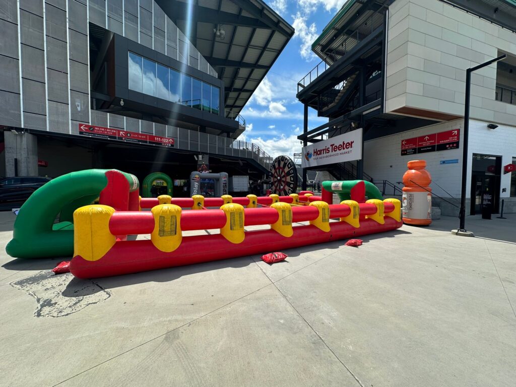 Step onto the field and into the game with one of Astro Jump’s team building inflatables – Human Foosball! Two teams strap themselves to the foosball bars and face off in a fast-paced battle to score. Just like the classic tabletop game that everyone loves, our Human Foosball inflatable delivers tons of laughs and friendly competition.
