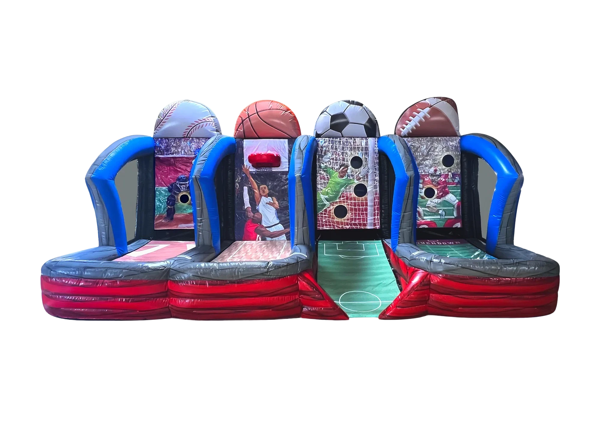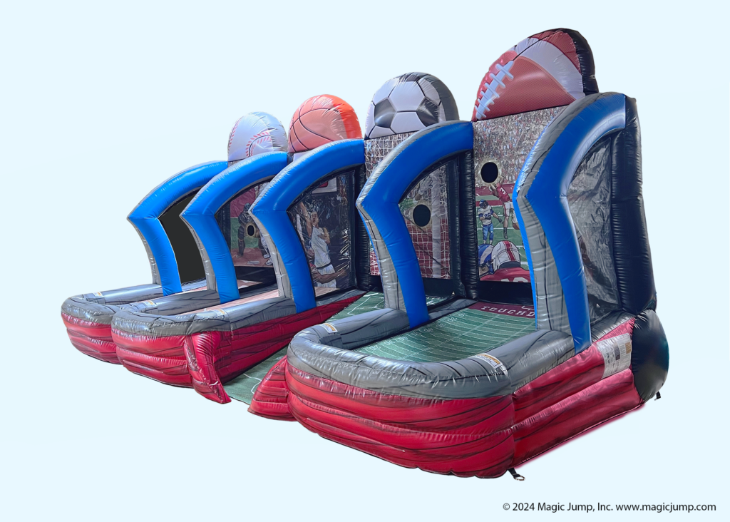 Introducing Astro Jump’s Sports Shootout, a four-in-one setup that lets you try basketball, football, soccer, and softball all in one spot. It’s perfect for big events like carnivals, school functions, or summer camps, and it’s super easy for anyone to jump in and play. With four different side-by-side sections, you can switch between games, show off skills, and keep the competition going. It’s fun to play, fun to watch, and guaranteed to keep everyone entertained. Add it to your next event and let the games begin!