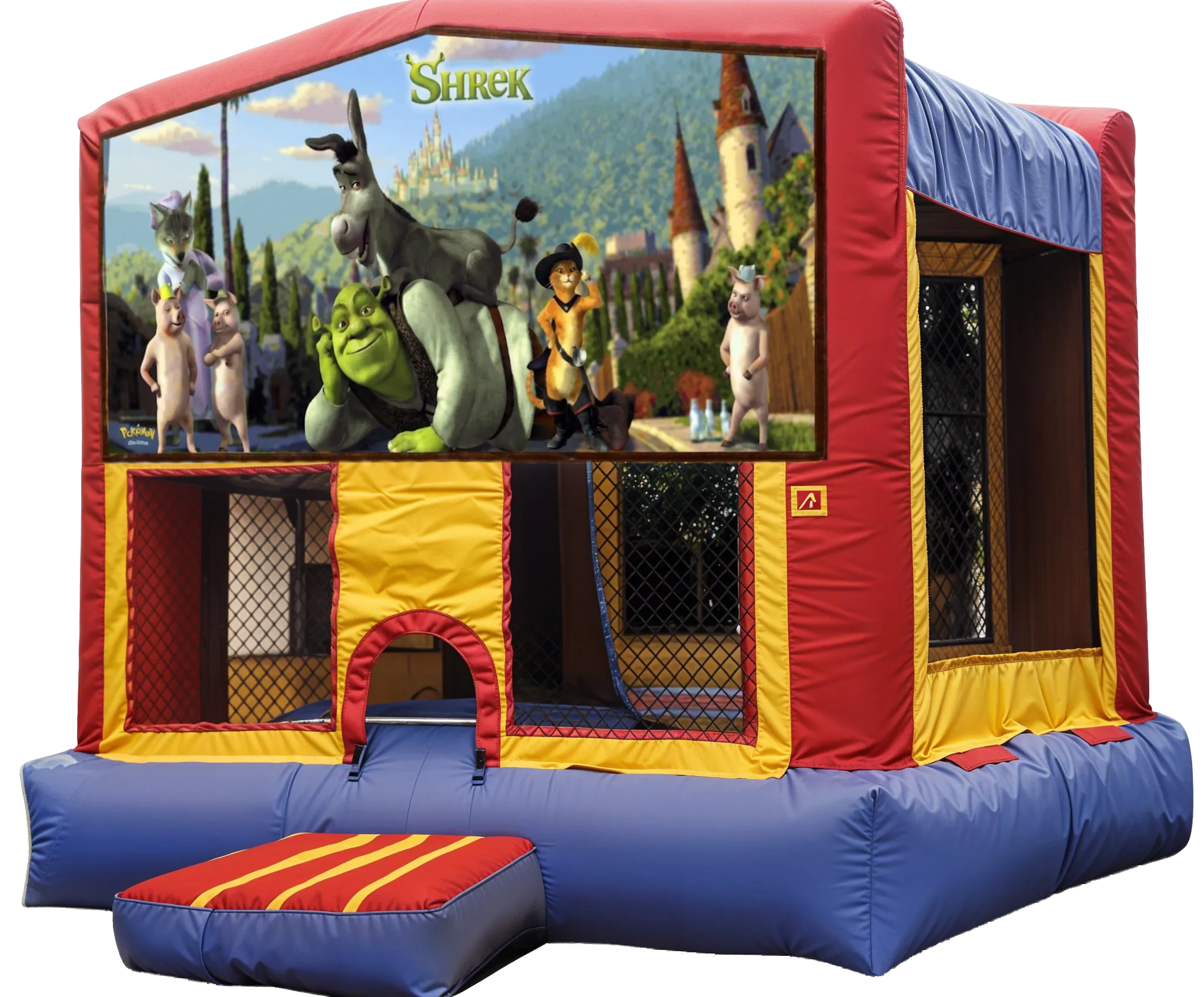 Shrek is still a crowd pleaser, and kids of all ages love seeing him at their party. This Shrek Themed Moon Bounce is a hit for both boys and girls and works great for school events, backyard birthdays, or any outdoor celebration. It’s one of our most popular themes and always gets the kids excited to jump right in.