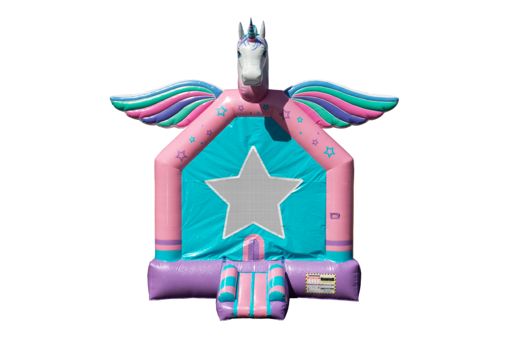 Bring a little magic to your next party with Astro Jump’s new Unicorn Moon Bounce. This bright and colorful inflatable features a fun unicorn design that kids will love. It’s perfect for birthdays, school events, and any celebration that could use a little extra sparkle with it’s unique embedded glitter jumping area, making every bounce pure magic!