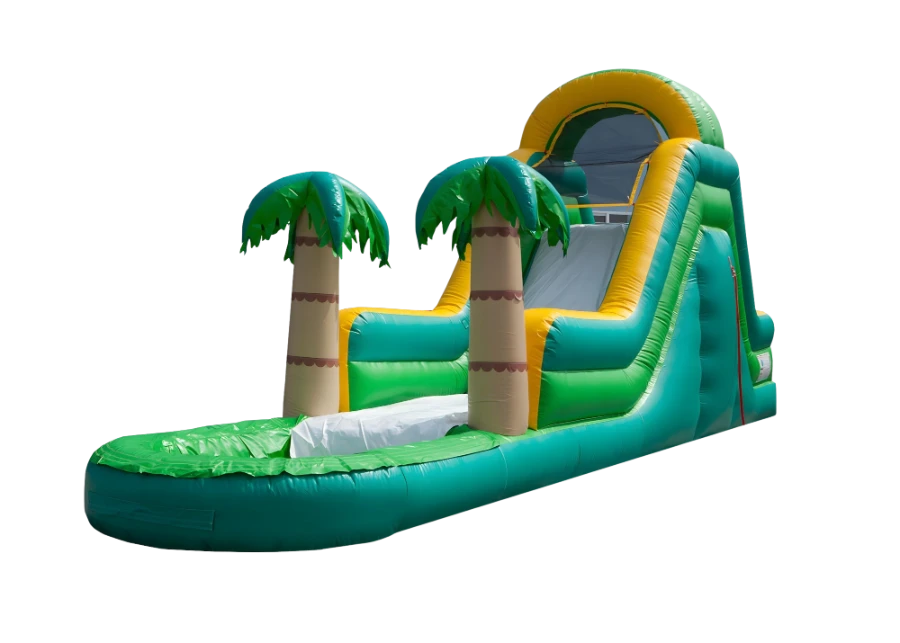 Looking for something to keep your little ones entertained all day? Astro Jump’s new 14′ Island Dive Water Slide can bring that right to your own backyard! Kids can climb to the top and slide down on the single lane slide past two palm trees to make a splash in the pool below. With its bright island colors and exciting design, this water slide is sure to be a hit with kids at any summer party or event. Love this slide but love dolphins too? Check out our 14′ Dolphin Dive Water Slide today!